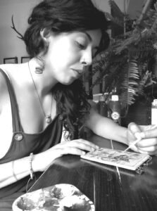 Soy Míriam, nacida en Blanes. Mi pasión por crear comenzó con la necesidad en la infancia de exteriorizar mis emociones y vivencias, a través de miles de dibujos entre mis libretas. Poco a poco esa necesidad fue creciendo, y en la adolescencia pasaba largas tardes paseando a mi perro, buscando entender la intensidad de los colores del atardecer.